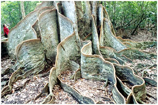 幹の下部は板根状になっていて、四方に広がります。