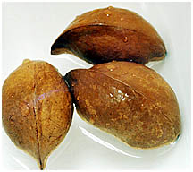 [果実(左)と海水に浮いた果実(右)、2001.3.13.]