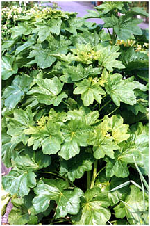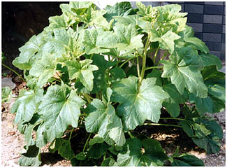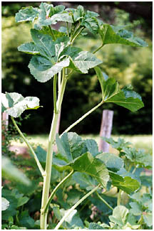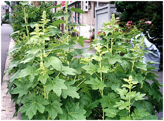 - 葉には長い葉柄がついています。5−7の切れ込みがあります。