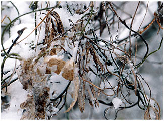 - 暖かくなると羽化してくるジャコウアゲハは、さなぎで冬越しをしています。