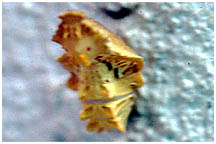 [左:さなぎになろうとする幼虫、1987.6.17./中:さなぎ、1984.6./右:さなぎ、1987.6.28.]