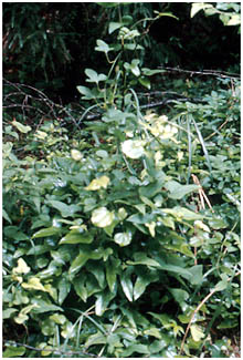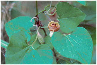 [幅の広い葉をしげらせるアリマウマノスズクサ、