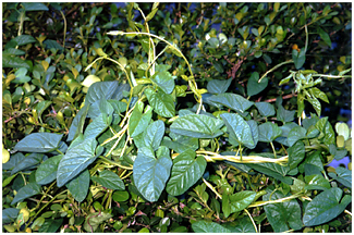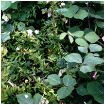- ヒルガオの葉は長楕円形で、花は紅色です。