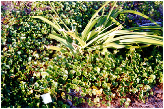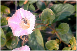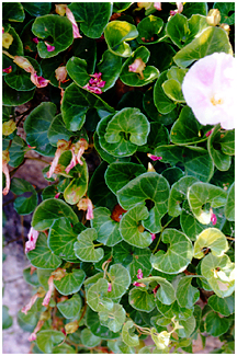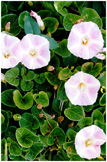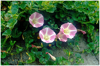 - 暖地の海辺には葉が厚く、軍配形のグンバイヒルガオがあります。