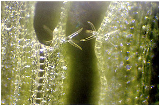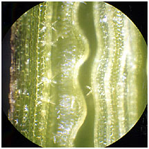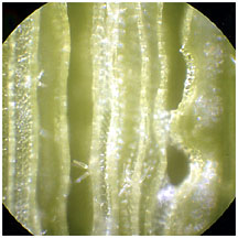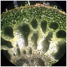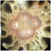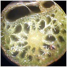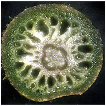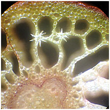 茎を横断すると......、穴が多く、口にとげ状の星がつきます。