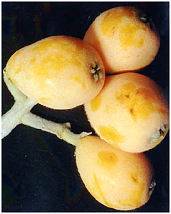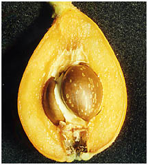 (1) 長だ円形の果実が熟してくると、ふくらみ、卵状だ円形になります。