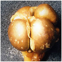 (3) 赤褐色の大きな種子が4個入っています。種子の表面には白っぽい点がついています。