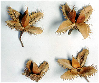 [木になっているブナの実 北区六甲山、2003.6.3.]
