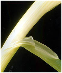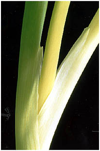- 葉のさやから葉の先までは葉の縁がくっついて角状で中は中空になっているのです。