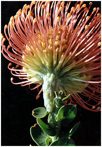 調べてみてPin(針)+cushion(クッション、クッション状のもの)から名がついたのでしょう。ヤマモガシ科の植物で西オーストリア原産の花であることが分かりました。花を見てみましょう。