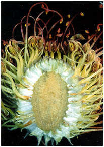 [南アフリカケープタウンで自生するピンクッション、2003.9.7、石津氏撮影]