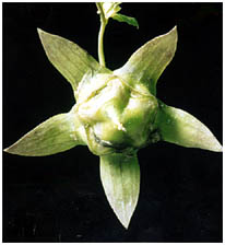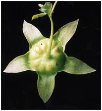 - 外側は淡い緑色で目立たちませんが、内側は濃い緑色の斑点をつけるなど変化に富んでいます。花冠は浅く5裂します。