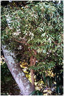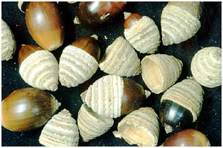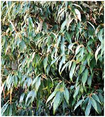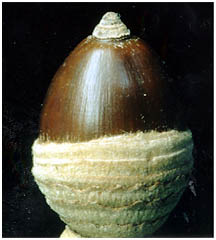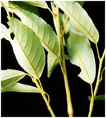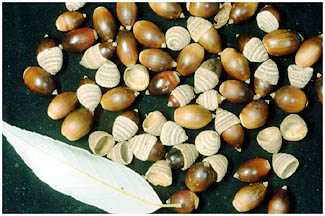 細長く(長だ円形、針形)ややかたいです。(写真右上)