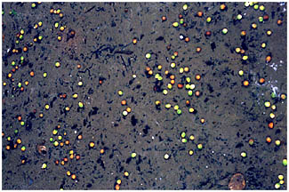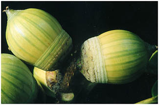 | [右:水中に落ちたドングリ、1999.10.26.] |