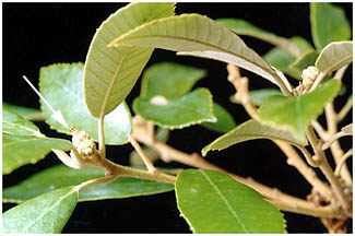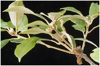 - 葉は互生につきます。荒い鋸歯(きょし)で先端はとがっています。