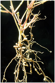 - 根りゅう菌がつきます。空気中のちっ素を取り込むはたらきをしています。マメ科の植物の特徴です。