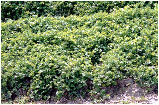 どんな葉が何枚つくでしょう。{円い3葉(まれに4枚)の葉・・・・・・これは実は1枚の葉です。}