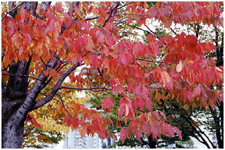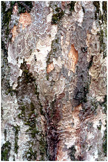 - 灰褐色の樹皮。太い幹ではりん片状にはがれ、まだら模様があります。