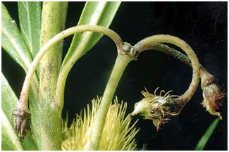 6あまり咲く花の中でふつう1個だけが実に育っていきます。実のつく柄は曲がります。