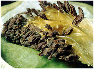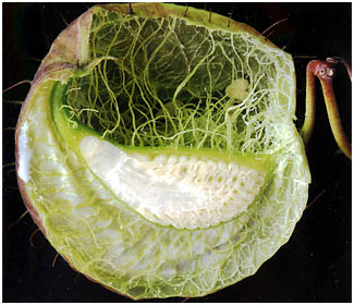 ふくろの中は無数の血管が伸びるように、ふくろと種子の部分とをつないでいます。