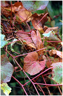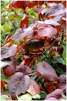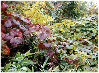 ※落葉・・・葉(葉身)のつけ根から落ちます。続いて柄(葉柄)が落ちます。 |