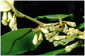 花の先は4裂、がくはつりがね状、おしべは短いのが4本です。