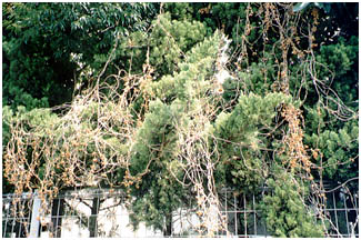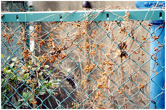 ヘクソカズラの実は鳥には食べられないようです。3,4月にも実がつきます。つるは枯れません。実(果実)は6mmくらいの球形で黄褐色、種子は2個入っています。