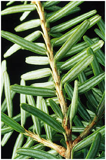 葉は平らで線形、密につきます。先端はわずかに凹型になります。