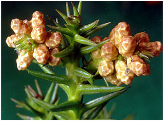 - 枝や葉は多くつきます。葉は小形の鎌状、密につきます。