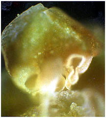 - 直径5mm。重なっためしべはすきまから胚乳を伸ばし、受粉液をだし、花粉がくるのを待ちます。