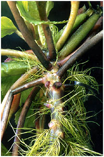 - 春、芽を出し、細長い茎を伸ばし、水面に葉を広げます。