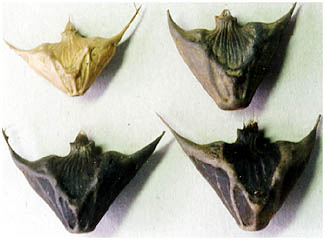 - 学名のTrapa は「敵が攻めてくるのを防ぐための刺のついた鉄製の武器」を短縮した言葉だそうです。