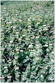 (1) 草丈の高いオドリコソウです。自然豊かな土地の道ばたや少し湿った場所に群がって生えています。