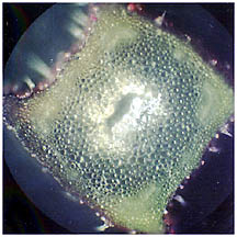 四隅に維管束があります。それを守る突出部と太い毛がつきます。