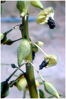 上右の写真は、秋、落ち種が芽を出して花を咲かせたものです。 |