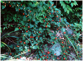 - 果実は赤く熟しますが食べてもおいしくありません。苦いのでこの名がついています。