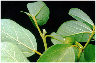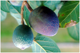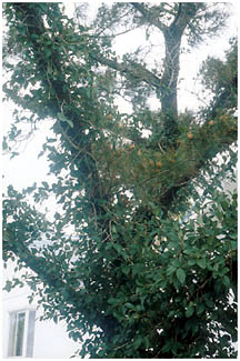 - 暖地の石垣、塀に気根をだして巻き上がる、つる性常緑の木です。