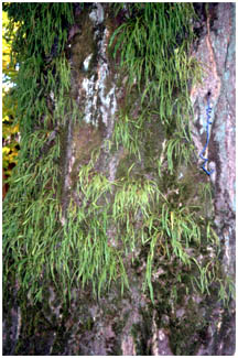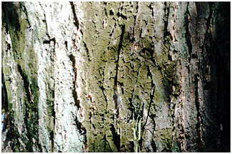 - 幹の太い大木になります。樹皮は灰色で厚いです(下)。