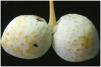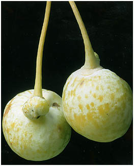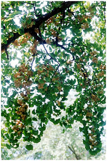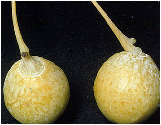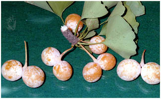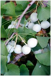 9月になって、精子2個のうちの1個がぞう卵器にはいり、受精します。(マツは花粉を受けて受精するまでもっと長いです。※マツを参照)その間、ギンナンのふくらむ様子はどうでしょうか。