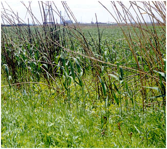 ヨシ原を焼くと、春、新芽がいきよいよく出ます。