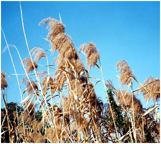 ヨシは、池、沼の周辺、流れのない河川敷、海浜の泥湿地などに生えます。