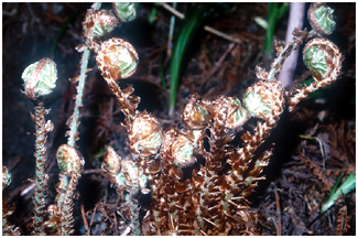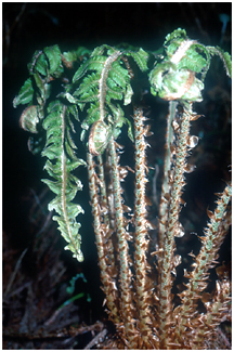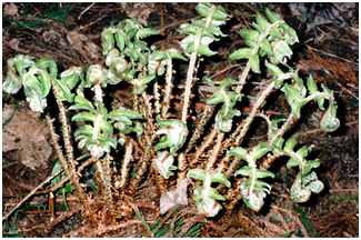 軸中央の鱗片はずんぐりで下向きにつきます。