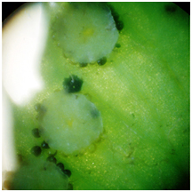 基部の鱗片はかたくてつやのある黒さです。幅は狭いです。