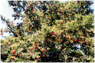 肉質の仮種皮が種子をおおいます。先は開いています。