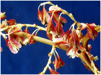 - 果実は3つの角のある菱形です。3枚のはねがあります。
