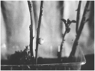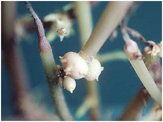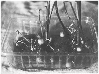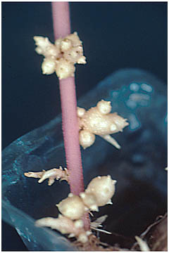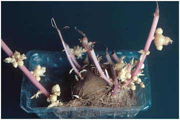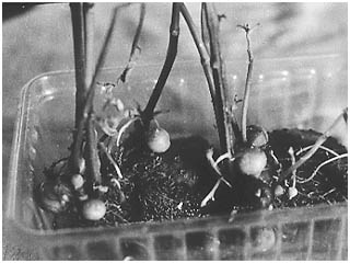 [水栽培のもの:茎を暗くするとそこにイモができた。]