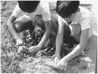 では、次に学習園のジャガイモの茎の一部をおおって、暗くしてみましょう。