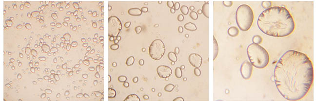 [ジャガイモのデンプンをいろいろな倍率で見たもの]