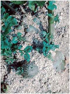 [肥料のないもの(左2列)とあるもの(右)、6月17日.]
