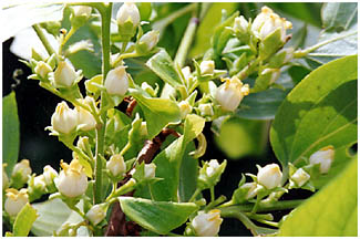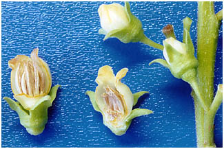 株によってお花とめ花をつけるものとめ花だけをつける株(栽培種)があります。
